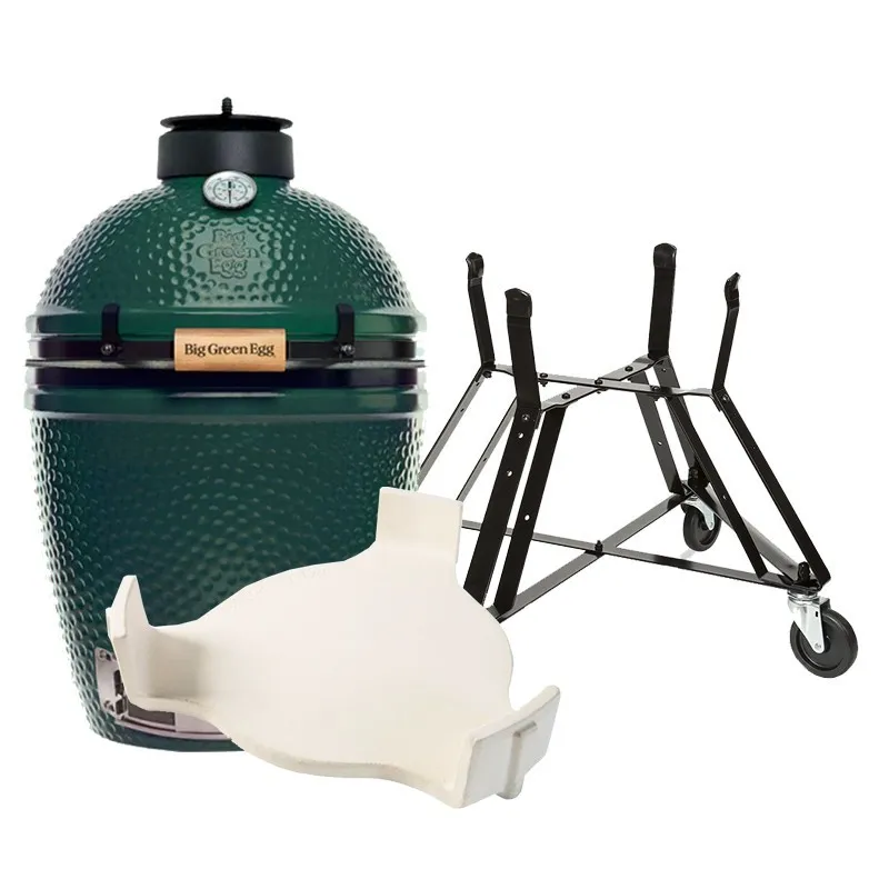 - Big Green Egg XL : L’EGG XL est le cœur de cet ensemble. Avec un diamètre de grille de cuisson de 61 cm, il offre une surface de cuisson généreuse de 2 919 cm2, idéale pour préparer des repas pour une grande tablée. L’EGG XL est polyvalent et permet une variété de cuissons, allant du grillage direct aux cuissons indirectes, en passant par les cuissons lentes et basses températures.