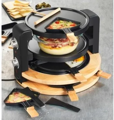 KITCHENCHEF – RACLETTE GRIL 8P 1500W PLAQUE ANTIADHESIVE GRIL ET CREPES 2 POELONS DOU