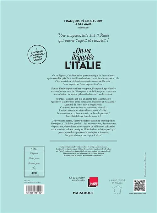En abordant près de 350 sujets, 100 recettes iconiques, tous les produits emblématiques de la gastronomie italienne, des portraits de personnages illustres, des centaines de cartes, tableaux, adresses, tours de main, anecdotes croustillantes…