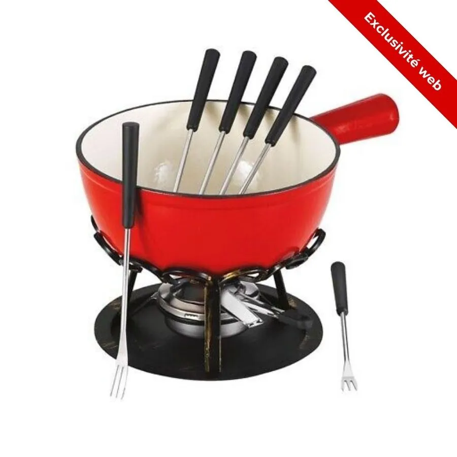 - Accessoires: Livré avec 6 fourchettes à fondue 3 dents, réchaud métal noir, brûleur à gel combustible vide